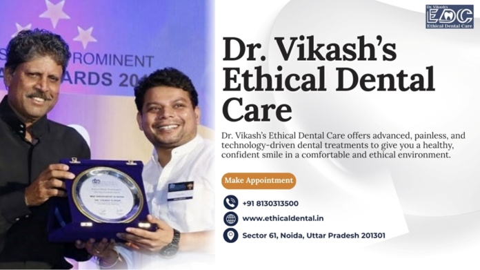 Dr. Vikash’s Ethical Dental Care is a dental practice in Sector 61, Noida, offering root canal treatment, single-visit RCT, dental implants, smile designing, aligners, fillings, and other restorative dental services. The clinic’s official website presents it as a modern, ethical, and technology-enabled center for precision dental care.